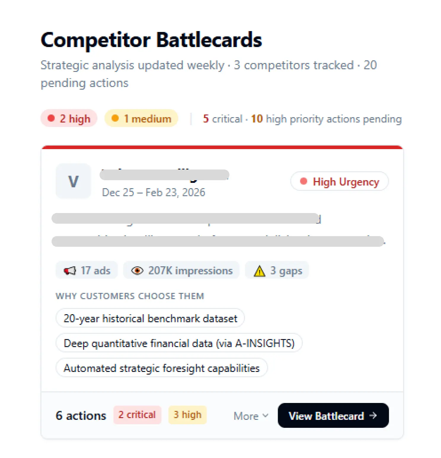 Cross-competitor strategic recommendations assigned to your team